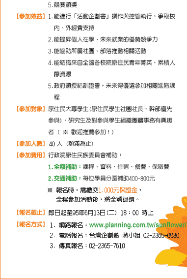 填列報名表後,以ATM轉帳或匯款方式繳納保證金:新台幣1,000元整 匯入戶名:台灣企劃塾股份有限公司 匯入銀行:華南銀行台北南門分行 (代碼008) 匯入帳號:117100157563?